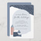Um convite de festas confortável de Natal, com vibrantes vibrações, com uma cena de Natal nevada. "Uma nova casa para as férias" aparece no topo, com seus detalhes de comemoração de casa embaixo.