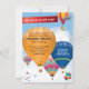 Suba, suba e saia com este convite com balões de ar quente flutuando num céu azul. Uma variedade de balões flutuando em frente a uma nuvem branca fluffy. impressões de texto de convite na dourada com a impressão RSVP em azul. Um avião voa acima de uma faixa à direita com um título personalizado. Adicione texto extra no verso ao balão dourado ou exclua. Excelente para festas de aniversário ou eventos de balonismo especiais. Disponível com produtos correspondentes.