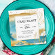 Hospede uma festa memorável de Banquete de Caranguejo, piquenique ou janto com este convite inspirado no oceano. Apresenta aquarelas abstrato pintadas para se assemelhar ao oceano e à areia, com sotaques de ouro coral. O verso do convite repete o mesmo design em sentido inverso com um caranguejo azul no centro do design. Personalize o modelo de texto com seus detalhes.