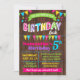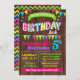 Esquema de cores de aniversário de Bash, rosa-quente, roxo, cor-de-rosa, amarelo e limão com fundo de madeira de falso adequado para qualquer idade. Adicione seu próprio texto ao modelo, para mais personalização (cor da fonte, estilo da fonte, plano de fundo), clique em personalizar, role para baixo e clique no link "clique para personalizar ainda mais":