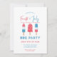 Celebre o Dia da Independência com estilo com este convite de festa vermelho, branco e azul que apresenta 3 picolés em cores coordenadas. Este convite é ótimo para festa no quintal, festa de churrasco ou apenas uma festa de celebração do Dia 4 de Julho. Decoração de festa correspondente em nossa loja.
