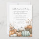 Um Pequeno Abobrinha Está a Caminho define o tom deste convite doce e aconchegante para o chá de bebê de outono - perfeito para celebrar um menino ou um chá de bebê neutro em termos de gênero.