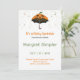 Convite de chá de bebê com tema de abóbora fofa e guarda-chuva que certamente vai arrancar um sorriso dos amantes de Halloween. Simples, mas dentro do tema.