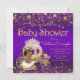 Convite de festa de bebê princesa afro-americana com adorável princesa étnica bebê e carruagem real de princesa roxa e dourada em um lindo fundo de confetes roxos e dourados. Você pode personalizar facilmente este lindo convite de festa de bebê roxo e dourado para o seu evento simplesmente adicionando seus detalhes no estilo de fonte que preferir. Este é um design impresso sem diamantes reais, folha metálica, purpurina, etc.