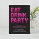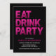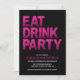 Celebre em estilo com este convite de aniversário ousado do "Partido da Bebida"! Apresentando uma tipografia de efeito brilho rosa grande contra um fundo preto sólido, este convite é perfeito para uma comemoração de 50 anos, ou qualquer idade! O modelo personalizável permite que você adicione facilmente seu nome, idade e detalhes da festa na tipografia moderna branca e rosa, o verso do convite tem um fundo preto.