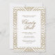 Convite moderno e sofisticado com um padrão geométrico branco e dourado perfeito para eventos pessoais e profissionais.