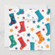O convite para troca de meias da Festa de Natal Bonita apresenta cinco meias diferentes penduradas no topo do cartão em azul vibrante e branco, verde, vermelho e laranja - cada uma trabalhada com um padrão de estrelas de férias. As meias são algemadas no topo. A placa reversa é um padrão perfeito de meias de feriado em cores em negrito e apresenta estrelas colocadas cuidadosamente para aprimorar esse design de feriado. O dia, a data e o mês da festa são totalmente personalizáveis, juntamente com a hora da parte, o nome do host e o local da parte, bem como as instruções e informações de RSVP.