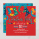 O convite da Bolsa de Choque da Festa de Natal divertida apresenta cinco meias diferentes penduradas na parte superior do cartão, com círculos e espirais no fundo. O script Sock Exchange é flanqueado por círculos e estrelas. Um fundo vermelho brilhante desenhar a atenção. A placa reversa é um padrão perfeitamente desenhado de meias de Natal e estrelas com um fundo azul de abaulamento para interesse e contraste. As informações de terceiros são totalmente personalizáveis.