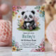 Este design de convite para o aniversário de panda floral inclui uma bonito borda de cor d'água floral. Há um urso panda fofo no centro que está sentado num pedaço de erva. Por baixo, há um espaço para adicionar suas informações em uma fonte decorativa e fácil de ler. Este convite diz "4º aniversário", mas você pode facilmente mudá-lo para qualquer ano de aniversário. Esses convites divertidos, porém bonito, para festas de aniversario de meninas também incluem escrevendo rosa.