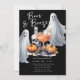 Este convite assustador apresenta um fantasma, abóboras, um cocktail assustador e um crânio. As palavras "Boos e Booze" são escritas em uma fonte de script. É a maneira perfeita de convidar seus amigos para uma festa de Halloween onde eles podem vir vestidos com seus trajes e desfrutar de alguns coquetéis.