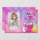 Convites divertidos de bola de boliche em desenho animado serão perfeitos para a celebração especial da sua filha. Inclui fundo de tie dye rosa, listras e estrelas com um efeito colorido e moderno. Substitua a imagem pela foto do seu filho para um efeito personalizado.