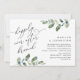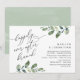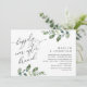 Lindo Design Moderno Romântico, em tema de aquarela de folhas de eucalipto verde, Anúncio de Casamento Elopement, Cartão de Convite (Brunch Felizes para Sempre). Isto é perfeito para o seu casamento e festa de celebração pós-casamento. Adicione os detalhes da celebração do brunch / jantar de elopement. #TeeshaDerrick
