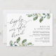 Lindo Design Moderno Romântico, em tema de aquarela de folhas de eucalipto verde, Anúncio de Casamento Elopement, Cartão de Convite (Brunch Felizes para Sempre). Isso é perfeito para o seu casamento e festa de celebração pós-casamento. Adicione os detalhes da celebração do brunch / jantar de elopement. #TeeshaDerrick