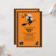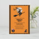 Este elegante convite para festas do Dia das Bruxas, com bruxas voadoras e morcegos, vexos e chapéus de bruxa, em faixas de laranja pretas, a tipografia de letras pretas do festival das Halloween com fundo laranja. É uma maneira perfeita de adicionar um toque de encantos góticos à festa da noite adulta do Halloween. Você pode facilmente alterar todos os detalhes clicando em opções de personalização.