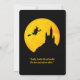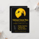 A lua cheia com uma bruxa voadora no convite da festa de vassoura Halloween, com um gato preto, bruxa e uma casa assustadora. Personalize este convite.