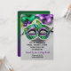 Máscara de Carnaval com lantejoulas roxas e verdes, pulseira e penas.