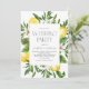 Convide convidados para o seu evento com este convite de festa de casamento personalizável. Apresenta uma estrutura aquarela de limões e flores de limão com a tipografia moderna. Personalize adicionando seus detalhes. Este convite à festa de casamento de limão é perfeito para casamentos de verão.