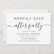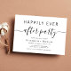 Convite de festa de casamento minimalista preto e branco para uma celebração pós-fuga ou casamento. "Festa Feliz para Sempre" é escrito em uma mistura de tipografia simples e uma fonte moderna e trendy com floreios.