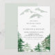Convite para festa de casamento do tema Woodland. Apresenta árvores de aquarelas e montanhas com tripes padrão e tipografia simples. Os textos são perfeitamente editáveis para todos os efeitos. Personalize adicionando seus próprios detalhes. Este convite à floresta aquarela é perfeito para festa do outono e casamento no inverno.