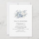Festa de Casamento da Noite de Código QR de Florais Azuis Modernos Disponível digitalmente e impresso. Uma natureza elegante inspirou design. Com um buquê azul e branco pálido acima da tipografia simplista e totalmente editável. Adicione seu código QR ao seu site de casamento no verso para que seus convidados possam RSVP e ver todos os detalhes on-line sem a necessidade de gabinetes separados. As cores de texto e de fundo podem ser alteradas se você quiser se adequar melhor ao seu tema de casamento através da opção personalizar mais.