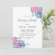 Defina um tom suave e elegante para a sua festa de casamento com este convite personalizável que inclui hífenes cor d'água azul e rosa. O delicado design floral acrescenta um toque romântico, perfeito para encontros de primavera ou verão. Um padrão de hydrangea correspondente no verso cria um olhar polido e coordenado. Personalize o seu convite adicionando os detalhes do evento, incluindo os nomes do casal, data, hora, local e informações de RSVP. Este convite é ideal para comemorações de horta, brunches ou qualquer chá de casamento com toque floral ou feminino.