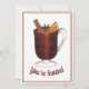 Convite apresenta uma ilustração original de uma caneca de vinho quente com anis-estrelado, laranja e pau de canela. Basta personalizar com suas informações para um convite único de inauguração, casa aberta, feriado ou festa de boas-vindas.
