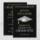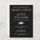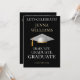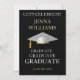 Festa de Celebração de Formatura Convite Dourado e Branco. Reúna amigos e familiares para celebrar um formando especial. Este cartão é projetado em dourado brilhante e branco sobre um fundo preto com um acento de gorro de formatura branco. O texto da frente inclui: o nome do formando e Turma do Ano. O texto do verso inclui: os detalhes da festa em dourado e branco sobre um fundo preto com acento de gorro de formatura branco. Para personalizar, basta inserir os detalhes do seu texto em nosso modelo fácil, substituindo a amostra.