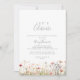 Este convite de festas de celebração de vamos de flor selvagem de boho é perfeito para uma festa de noivado, festa de solteira, aposentadoria, graduação, casamento após festa ou qualquer evento ou festa moderna. A design apresenta flores cor-de-rosa, roxa, esbranquiçada, amarela, azul empoeirado, vermelha, silvestre burgundy montadas em um padrão floral perfeito e delicioso, evocando beleza natural.
