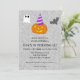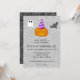 Este é para qualquer pessoa que tenha aniversário logo antes ou no Dia das Bruxas, e pode ser usado para pessoas de todas as idades, apesar de alguns elementos parecerem fofos. O foco principal deste é a abóbora com um chapéu de festa. Este cartão apresenta elementos personalizáveis que podem ser alterados usando o botão azul "Personalizar este design". Você pode alterar o nome e a idade da pessoa, a data e hora da festa, o local da festa e as informações de confirmação de presença.