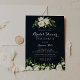 Este convite de festas verde azul-floral azul chá de panela é perfeito para um chá de casamento rústico. O design apresenta elegantes pedras brancas de aquarela com folhagem verde em fundo azul escuro.