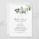 Este moderno convite de festas de chá de chá de panela de oliveira é perfeito para um evento de boho. O design rústico, porém elegante, apresenta folhas botânicas de cor aquática simples e azeitonas pretas num pequeno galho com um toque mediterrânico clássico.