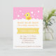 Celebre a chegada de sua menina com esse bonitinho pato amarelo e chá de fraldas de bolhas que certamente deixa uma impressão com seus convidados. Uma faixa amarela para realçar o nome da menina. Personalize facilmente com os detalhes do seu partido. Um design de excelente para qualquer um planejando uma festa de chá de fraldas de menina!