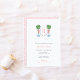 Este clássico design de convite para chá de fraldas apresenta uma simples crista monográfica flanqueada em ambos os lados por uma bola topiária pintada à mão num jarro de gengibre enfeitado com arco rosa de disquete. Elementos aquosos foram pintados por mim em papel de algodão a 100% e digitalizados em forma digital. A forma da crista é de outro artista.