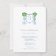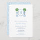 Este clássico design de convite para chá de fraldas de apresenta uma crista monográfica simples flanqueada em ambos os lados por uma bola topiária pintada à mão num jarro de gengibre enfeitado com arco de disquete. Elementos aquosos foram pintados por mim em papel de algodão a 100% e digitalizados em forma digital. A forma da crista é de outro artista.