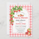 Convites Festa de Chá de fraldas de Morango Rosa Gingham