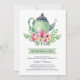 Este convite de chá de panela elegante e sofisticado apresenta uma ilustração em aquarela de um bule de chá. Abaixo do bule de chá há um buquê de lindas flores em aquarela. Abaixo das flores, há uma faixa verde clara com o texto "Chá de Panela" impresso em azul escuro. O texto restante é impresso em azul escuro em um fundo branco. Este convite é impecável e é o convite perfeito para aquela noiva refinada e sofisticada. Todo o texto é totalmente personalizável para adequar as informações às suas necessidades usando as caixas de texto na coluna direita da página da web. Se preferir alterar as fontes no convite, basta clicar no botão "personalizar" e o Zazzle permitirá que você faça isso facilmente. Este convite também está disponível em vários tipos de papel de alta qualidade. Há também muitas formas de convite para escolher, mediante uma taxa adicional. Eles estão disponíveis para visualização na coluna direita da página da web. Os convites do Zazzle são de qualidade fabulosa, e sei que você vai adorar estes! Por favor, envie-me uma mensagem se tiver alguma dúvida ou