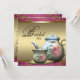 Convites elegantes de festa de chá de noiva rosa e dourado. Personalize a frente e o verso para o seu evento.