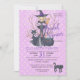 Engraçado elegante lilás púrpura bolinhas de tipografia modelo de chá de panela de Halloween com convite de festas de bruxa com uma bruxa vestindo um chapéu com vassoura, pá e gatos pretos Preencham suas informações nos pontos, Você pode escolher personalizá-lo mudando mais as fontes e as cores das letras. — O convite é adequado para uma festa inspirada no tema do Dia das Bruxas. — Se precisar de assistência para personalizá-la, por favor, entre em contato comigo!