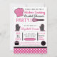 Os convites de festas de chás de panela temáticos do cozinhar de cozinha moderno apresentam tipografia, acessórios e utensílios de cozinha e padrões de bolinhas em um esquema de cores preto, rosa e branco.