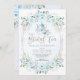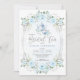 O chá de panela do Tea party temed convida em bonito azul-bebê e prata. Clique no botão "personalizar mais" se quiser reorganizar e formatar o estilo e a posição do texto. Vem com um padrão floral correspondente no verso.