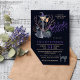 Chic elegante Halloween escuro, meia-noite azul e modelo de convite de festas de tipografia roxa apresentando uma bruxa num vestido de carvão de cinza e chapéu com vassoura, pá e gatos Preencha suas informações nos pontos, Você pode escolher personalizá-lo mudando ainda mais as fontes e as cores das letras. — Observe que a cor de fundo é editável. Você pode mudá-lo depois de selecionar a opção PERSONALIZAR.—O convite é adequado para uma bruxa malvada do Dia das Bruxas que teve o tema noturno das meninas. — Se precisar de assistência para personalizá-la, por favor, entre em contato comigo!