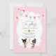 Convites Festa de chá de segundo aniversário rosa e Dourada