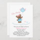 Um convite bonito para uma festa de chá com uma menina de urso azul com arco rosa, segurando um balão de chaleira. O Design é separado do texto com um gráfico azul da coroa da bandeja. Enquanto exibido como um convite para chá de noiva, ele pode ser personalizado para chá, aniversário ou evento com um tema de festa de chá. Escolha entre cantos quadrados padrão ou um número de variações de na moda. Graphics/www.bearnecessitiesscraps.com, www.digiwebstudio.com
