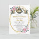 © 2023 Socialite Designs & LICENCORS. Bule de chá e chá de ornamentado convite de festas. O design tem um belo bule de chá, chaleiras, e uma estrutura oval com aspecto de folha de ouro. Se você quiser outros produtos com este design, por favor entre em contato com Designs socialitas.