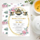 © 2023 Socialite Designs & LICENCORS. Bule de chá e chá de ornamentado convite de festas. O design tem um belo bule de chá, chaleiras, e uma estrutura oval com aspecto de folha de ouro. Se você quiser outros produtos com este design, por favor entre em contato com Designs socialitas.