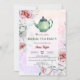 © Socialite Designs & LICENCORS. Bule de chá elegante e convite de festas de chá floral. O design tem um belo bule de chá, um quadro de rosa e fundo de aquarela. Se você quiser outros produtos com este design, por favor entre em contato com Designs socialitas.
