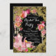 Convite de festas elegante de chá com rosa rosa bonito, pérolas elegantes e bule de chá rosa e teacup num lindo fundo brilhante preto e dourado. Este elegante convite de festas de chá de noiva é facilmente personalizado para o seu evento, adicionando os seus detalhes no estilo de letra e cor, bem como o texto da sua escolha. Você também pode alterar a cor de fundo. Este é um design impresso sem pérolas reais, brilho, etc.