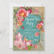 Bonito rosa rosa, pérolas elegantes e bule de chá rosa e teacup sobre um belo fundo azul-lacre e ouro. Este elegante convite de festas de chá de noiva é facilmente personalizado para o seu evento, adicionando os seus detalhes no estilo de letra e cor, bem como o texto da sua escolha.