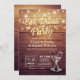 Comece a beber e a casar-se com Modelos de Cartões de Celebração de Casamento - Escuro Dourado Elegante, Óculos de Champanhe Vintage e Luzes de Cordas no Fundo da Madeira Rústica. Um Design Perfeito Para O Seu Grande Dia! Todo Estilo De Texto, Cores, Tamanhos Podem Ser Modificados Para Ajustado Das Suas Necessidades.