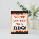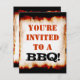 "Você é convidado para um CHURRASCO!" em negrito na frente cercada por uma borda de chamas! Personalize facilmente o texto frente e verso. Excelente para churrascos de verão, festas de praia, reuniões, aniversários, eventos especiais, aniversários, formandos, cozinheiros, qualquer ocasião feliz e se juntem!